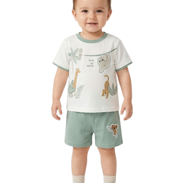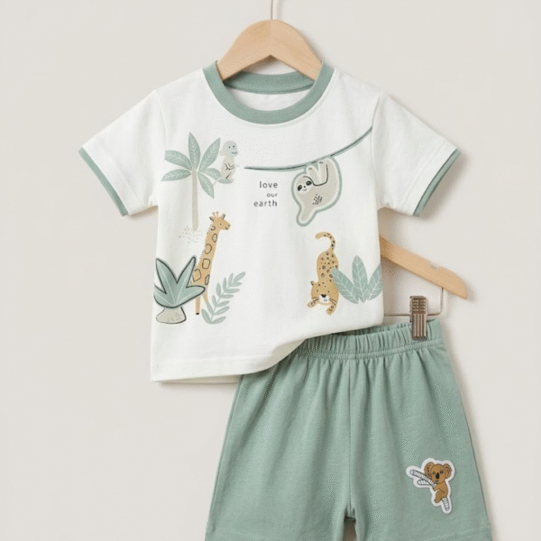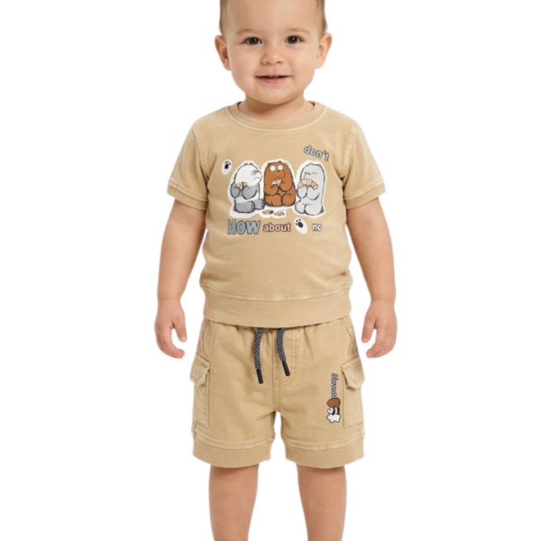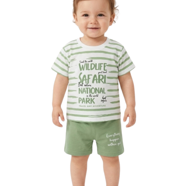 CDECK baby clothing set is thoughtfully designed to provide comfort and ease for your little one’s daily wear. Made from soft and breathable cotton fabric, this outfit includes a comfortable t-shirt paired with matching shorts, making it suitable for all-day use.