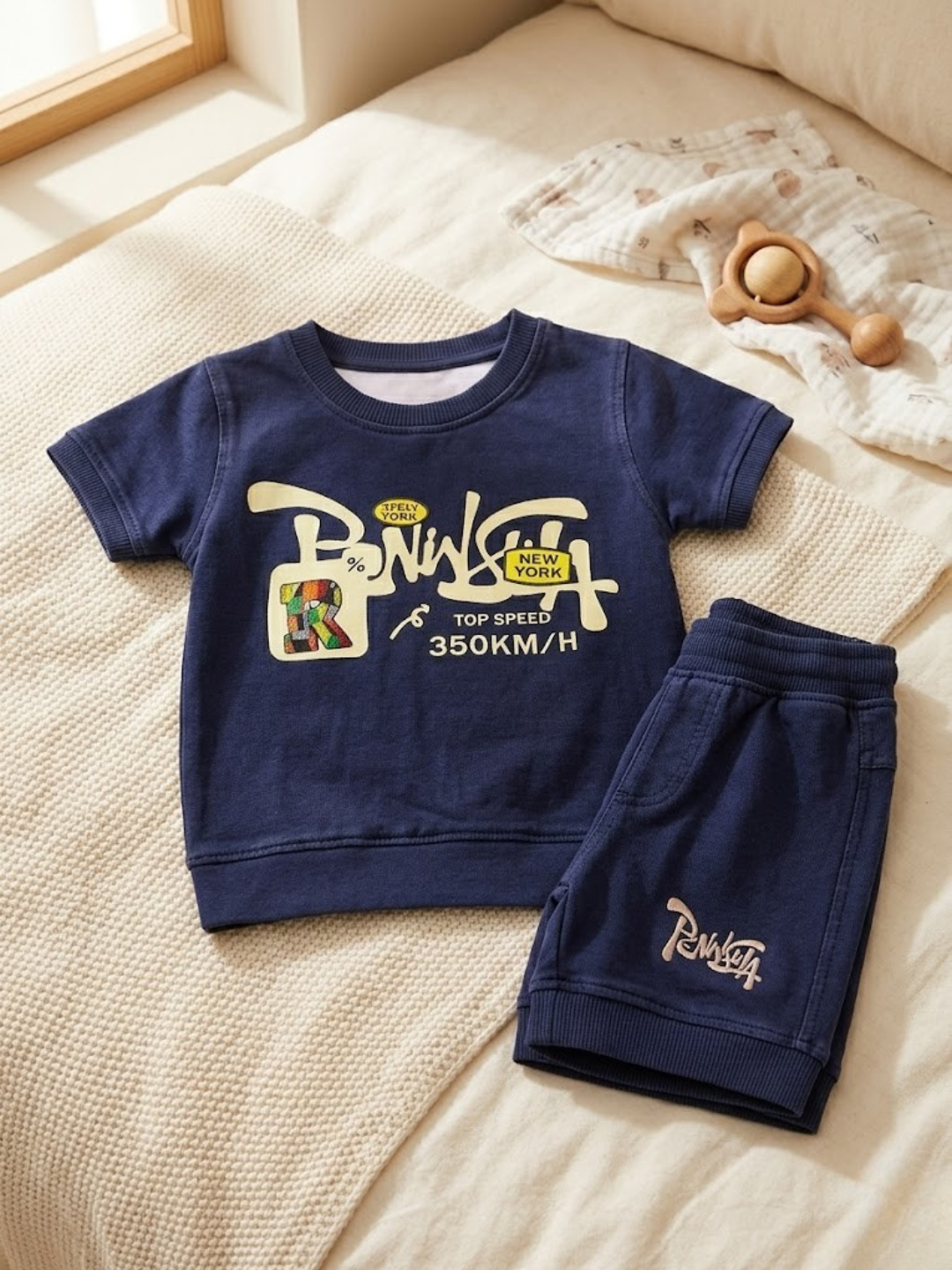 The lightweight material feels gentle on delicate skin, while the relaxed fit allows free movement during playtime and rest. The elastic waistband on the shorts ensures a secure yet comfortable fit without causing discomfort.