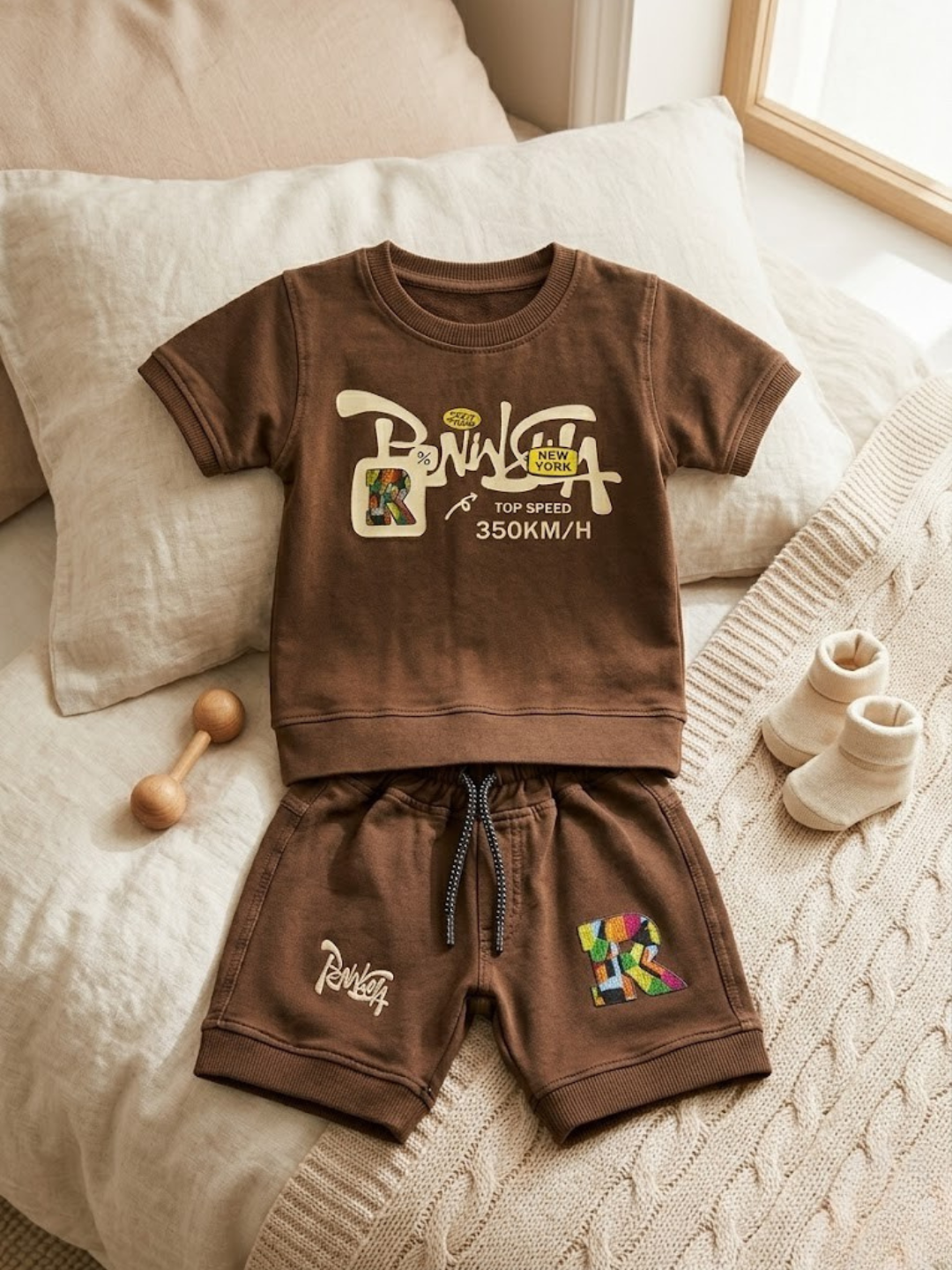 CDECK baby clothing set is thoughtfully designed to provide comfort and ease for your little one’s daily wear. Made from soft and breathable cotton fabric, this outfit includes a comfortable t-shirt paired with matching shorts, making it suitable for all-day use.