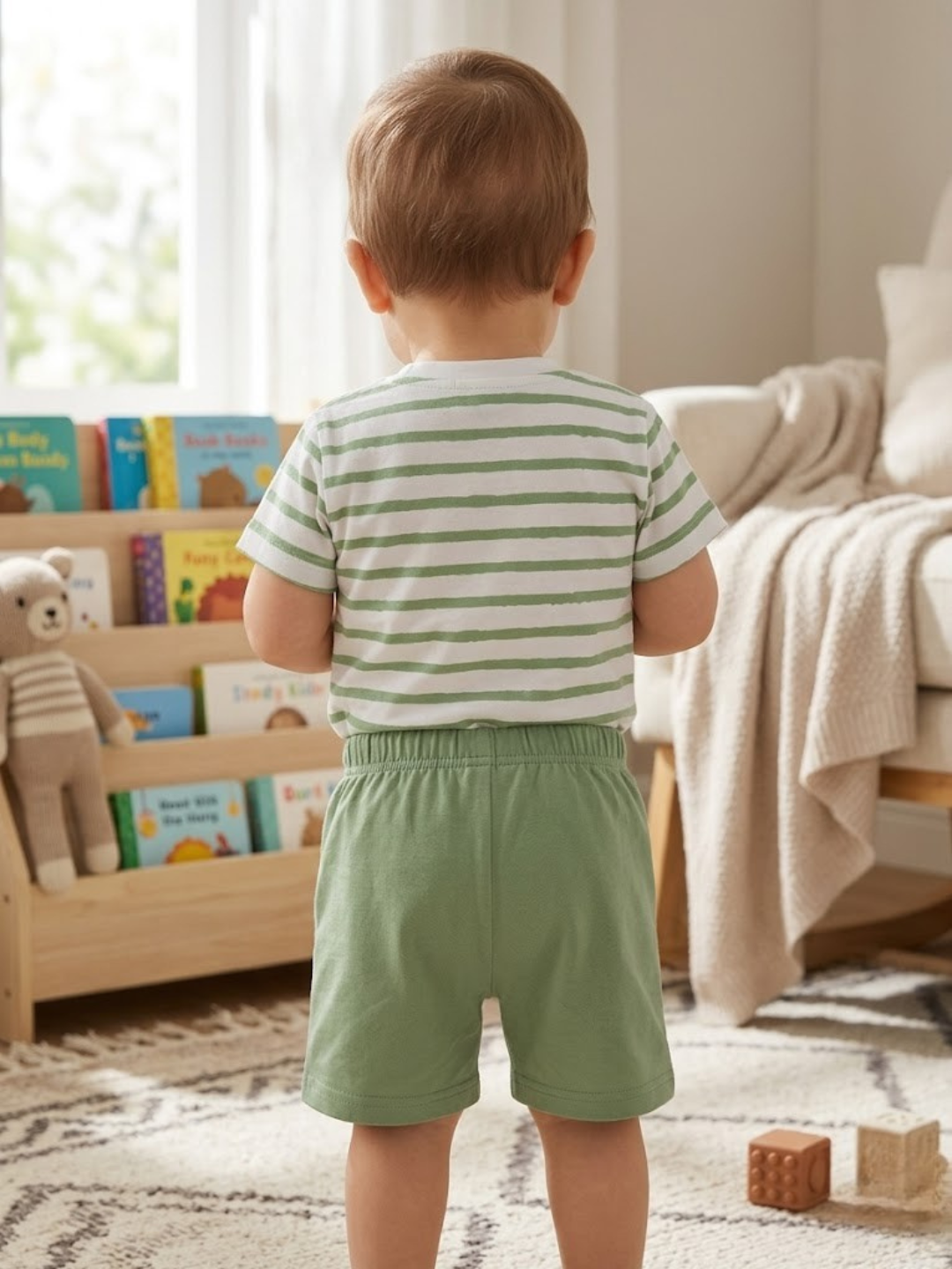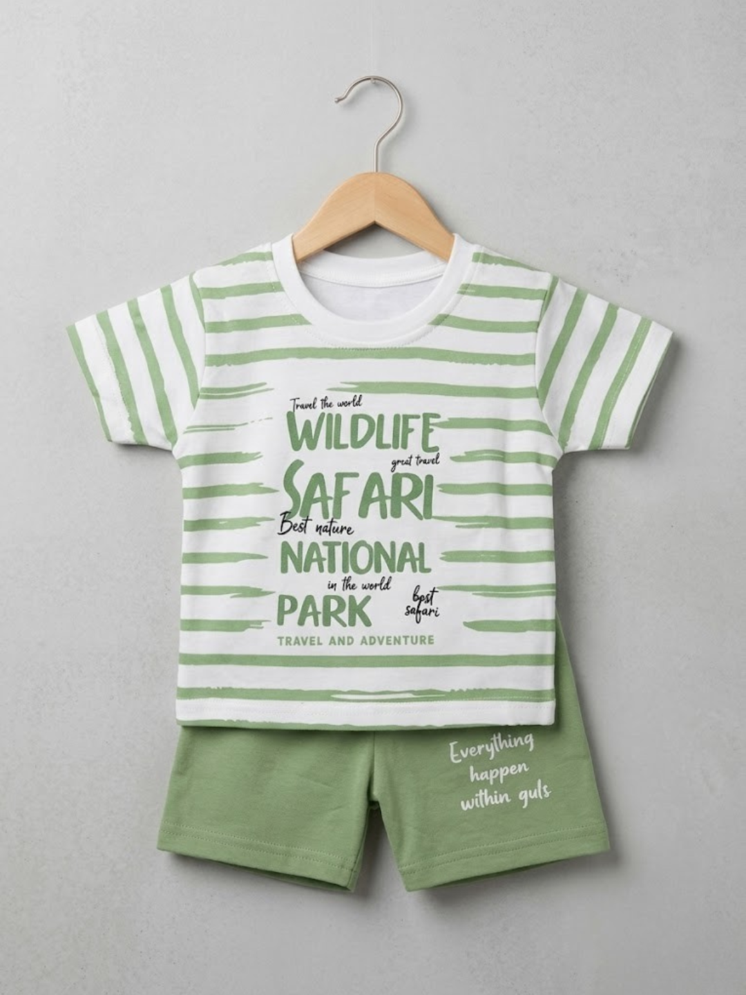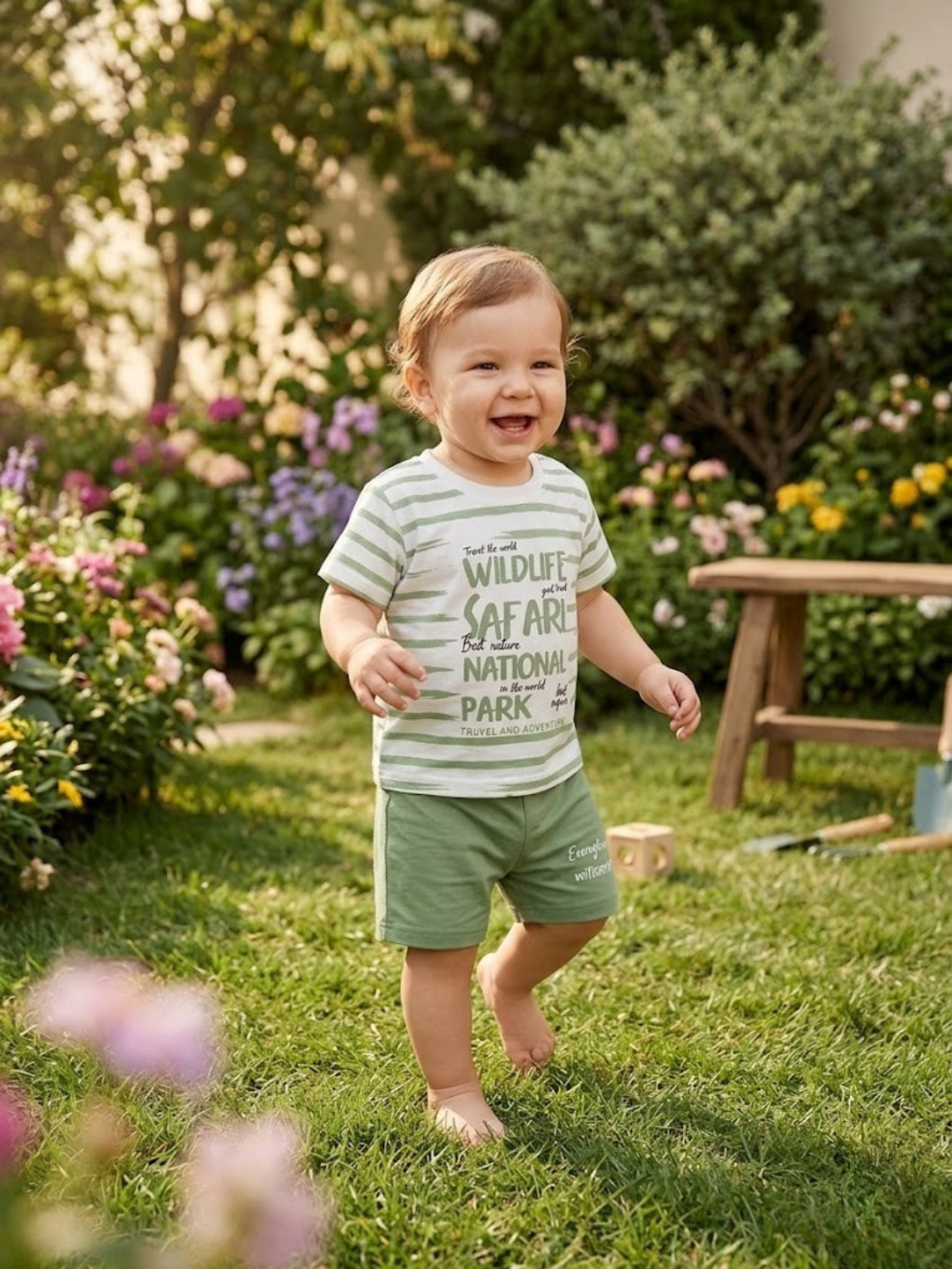 CDECK Baby Clothing Set | Soft Cotton T-Shirt and Shorts Set for Boys & Girls Comfortable Daily Wear Outfit | Green