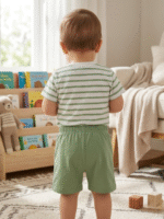 The lightweight material feels gentle on delicate skin, while the relaxed fit allows free movement during playtime and rest. The elastic waistband on the shorts ensures a secure yet comfortable fit without causing discomfort.