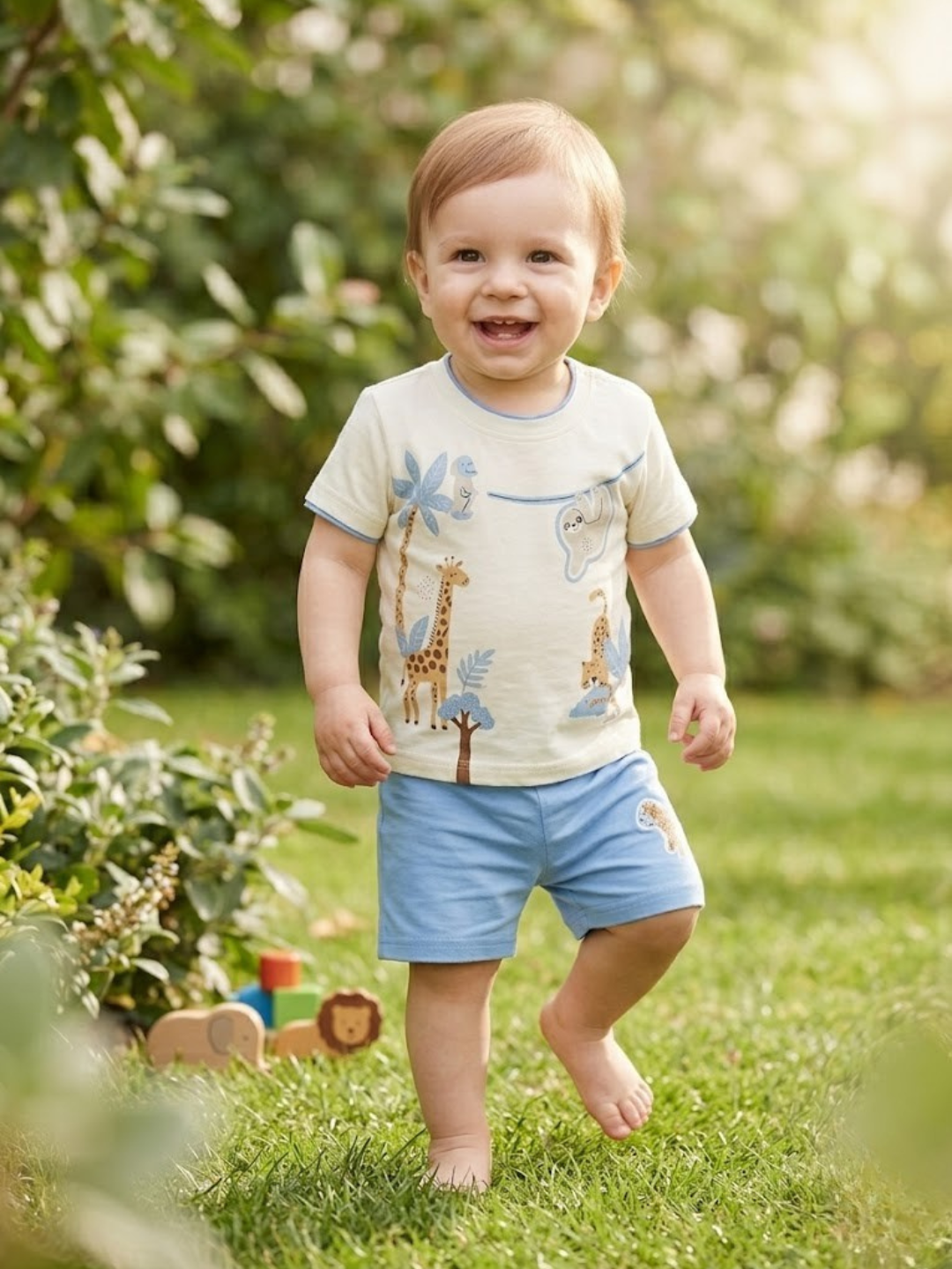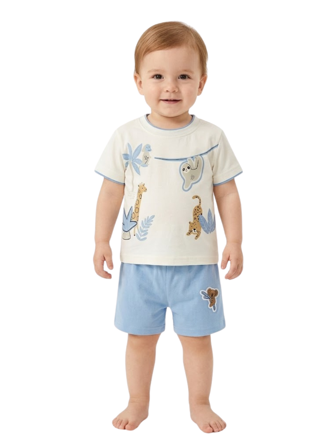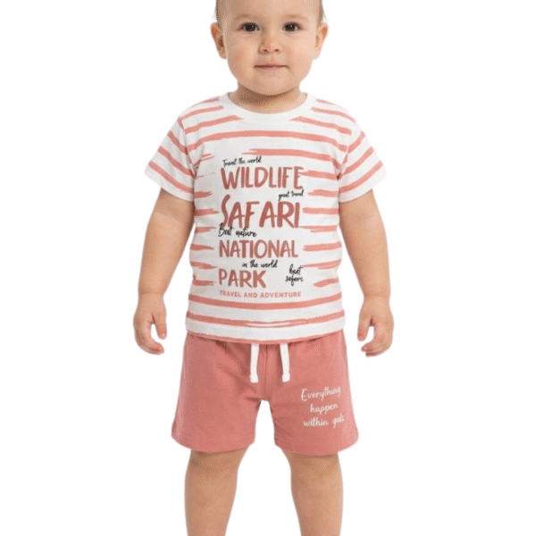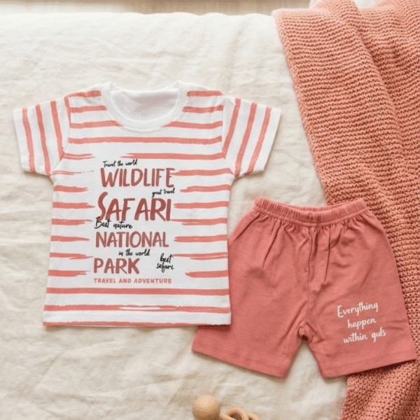 CDECK baby clothing set is thoughtfully designed to provide comfort and ease for your little one’s daily wear. Made from soft and breathable cotton fabric, this outfit includes a comfortable t-shirt paired with matching shorts, making it suitable for all-day use.
