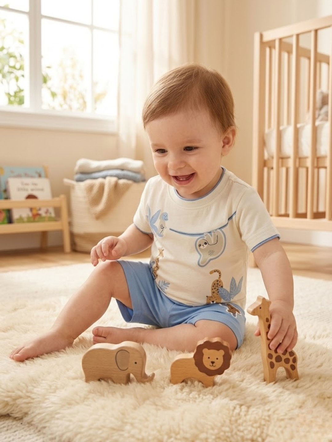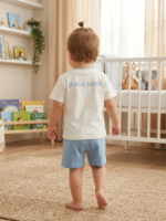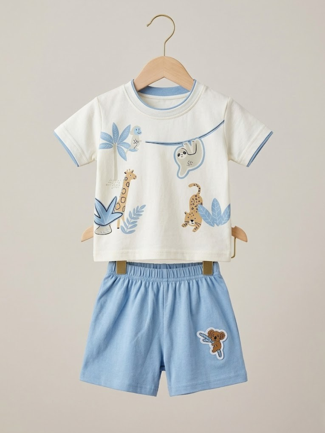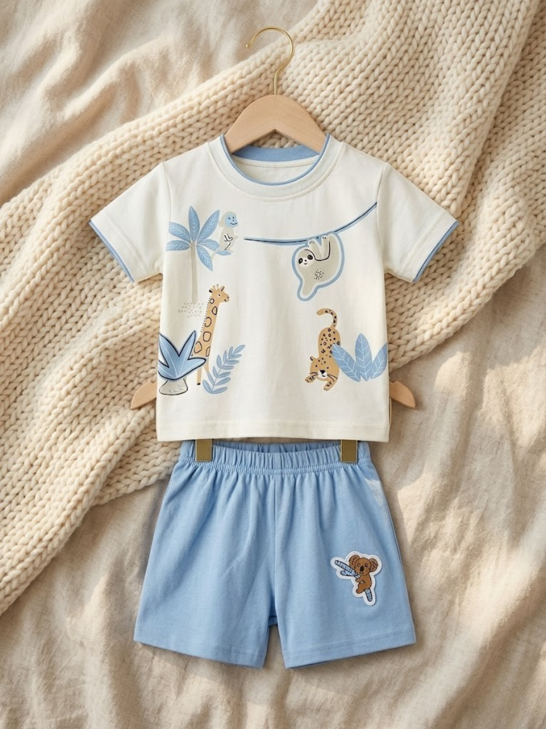 The lightweight material feels gentle on delicate skin, while the relaxed fit allows free movement during playtime and rest. The elastic waistband on the shorts ensures a secure yet comfortable fit without causing discomfort.