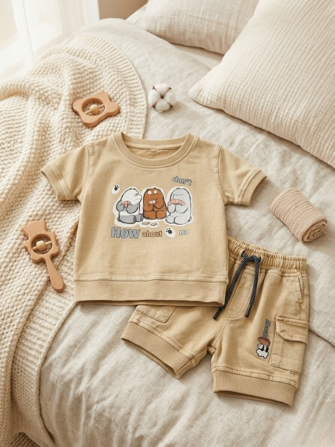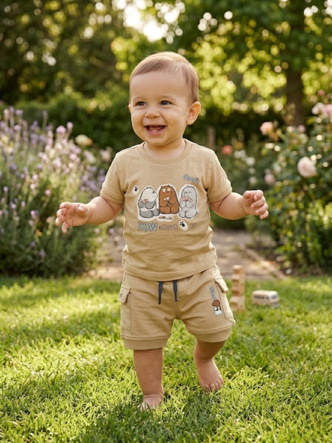 CDECK baby clothing set is thoughtfully designed to provide comfort and ease for your little one’s daily wear. Made from soft and breathable cotton fabric, this outfit includes a comfortable t-shirt paired with matching shorts, making it suitable for all-day use.