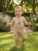 The lightweight material feels gentle on delicate skin, while the relaxed fit allows free movement during playtime and rest. The elastic waistband on the shorts ensures a secure yet comfortable fit without causing discomfort.