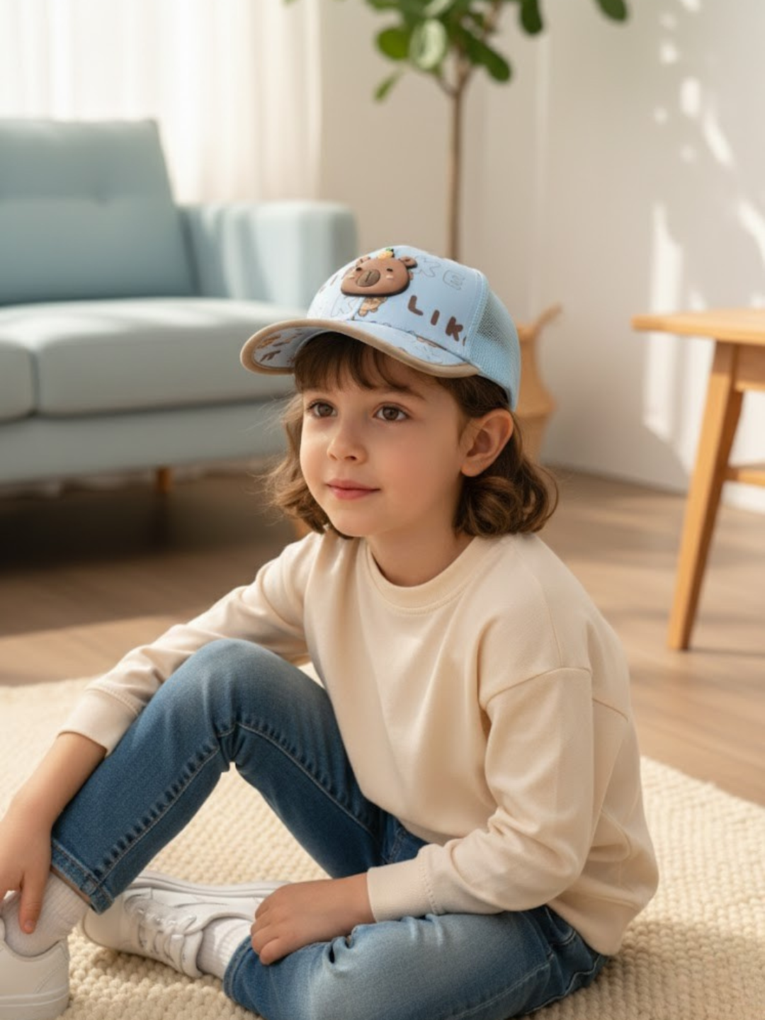 Lightweight and easy to maintain, this cap is a practical accessory that combines comfort with a cheerful appearance, making it a great addition to any child’s daily wear.