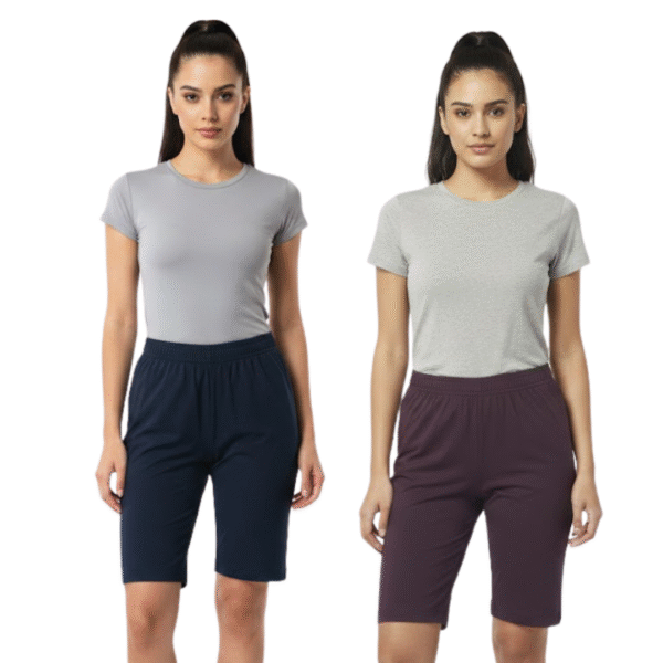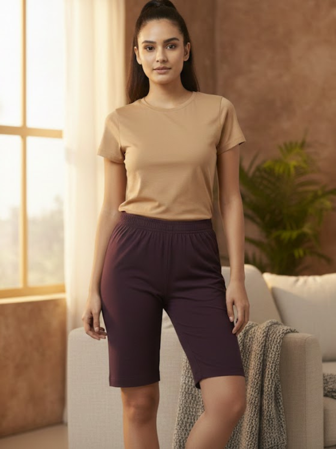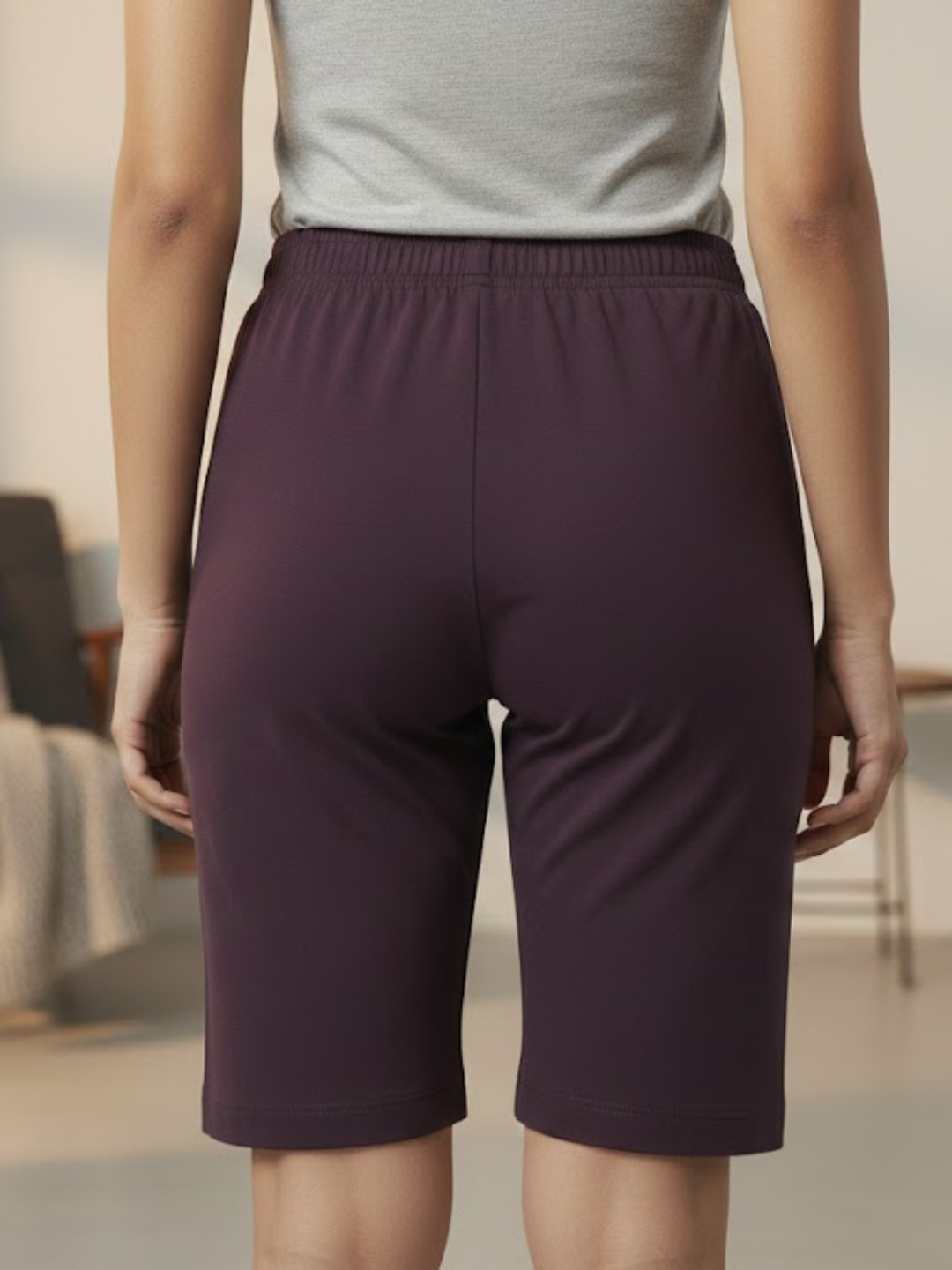 Cdeck Women Hosiery Cotton Cycling Shorts | Soft Stretchable Knee Length Shorts for Workout, Casual Wear & Daily Comfort | Dark Purple