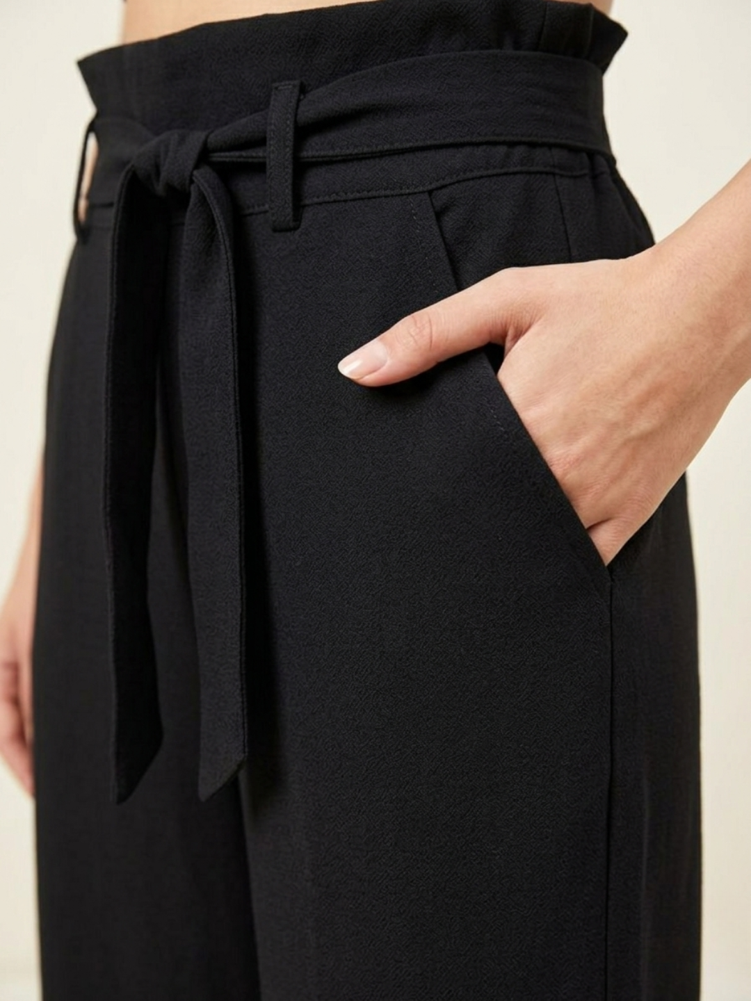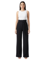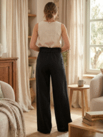 CDECK Women Linen Palazzo Pants | Relaxed Fit High Waist Wide Leg Trousers with Drawstring for Casual Wear | Black