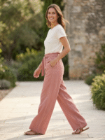 CDECK women’s linen palazzo pants are designed to offer a perfect blend of comfort and effortless style. Crafted from lightweight and breathable linen fabric, these pants provide a relaxed feel, making them suitable for all-day wear. The wide-leg silhouette allows easy movement, while the high-waist design with an adjustable drawstring ensures a secure and comfortable fit.