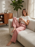 Be the first to review “CDECK Women Linen Palazzo Pants | Relaxed Fit High Waist Wide Leg Trousers with Drawstring for Casual Wear | Peach”